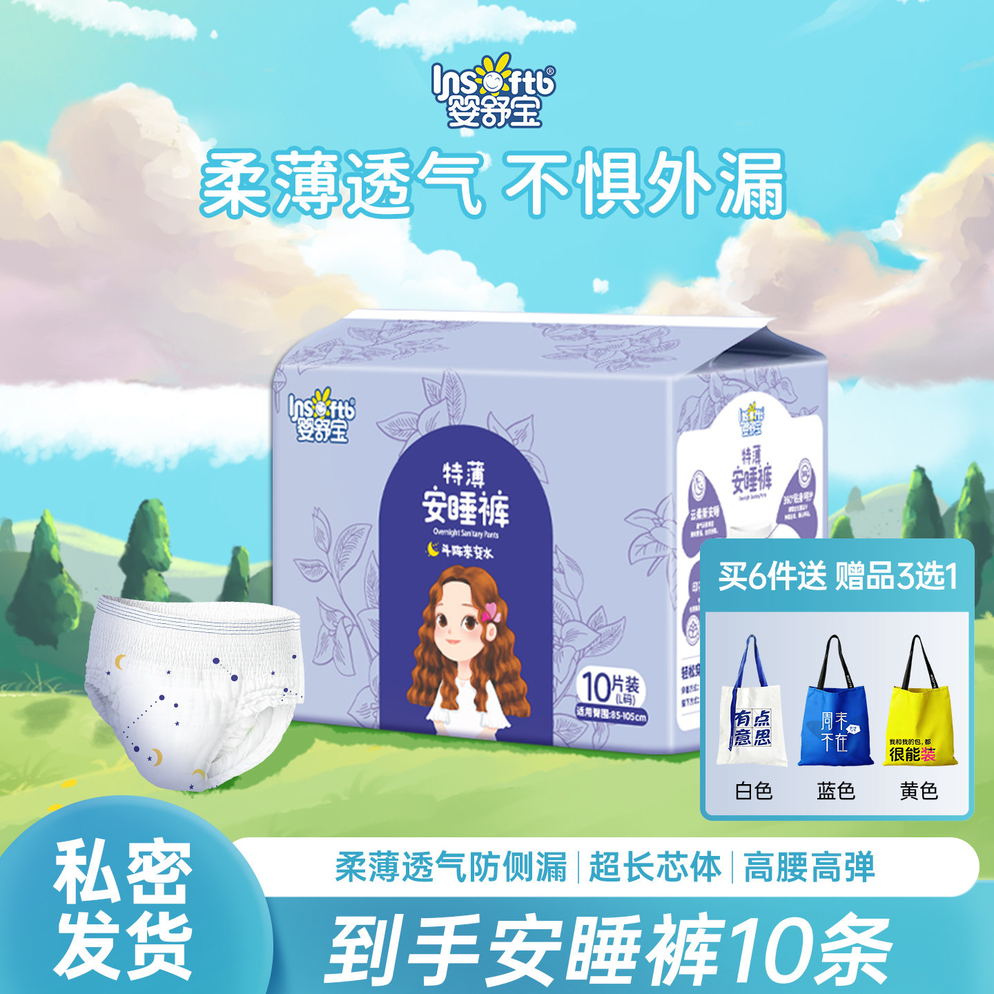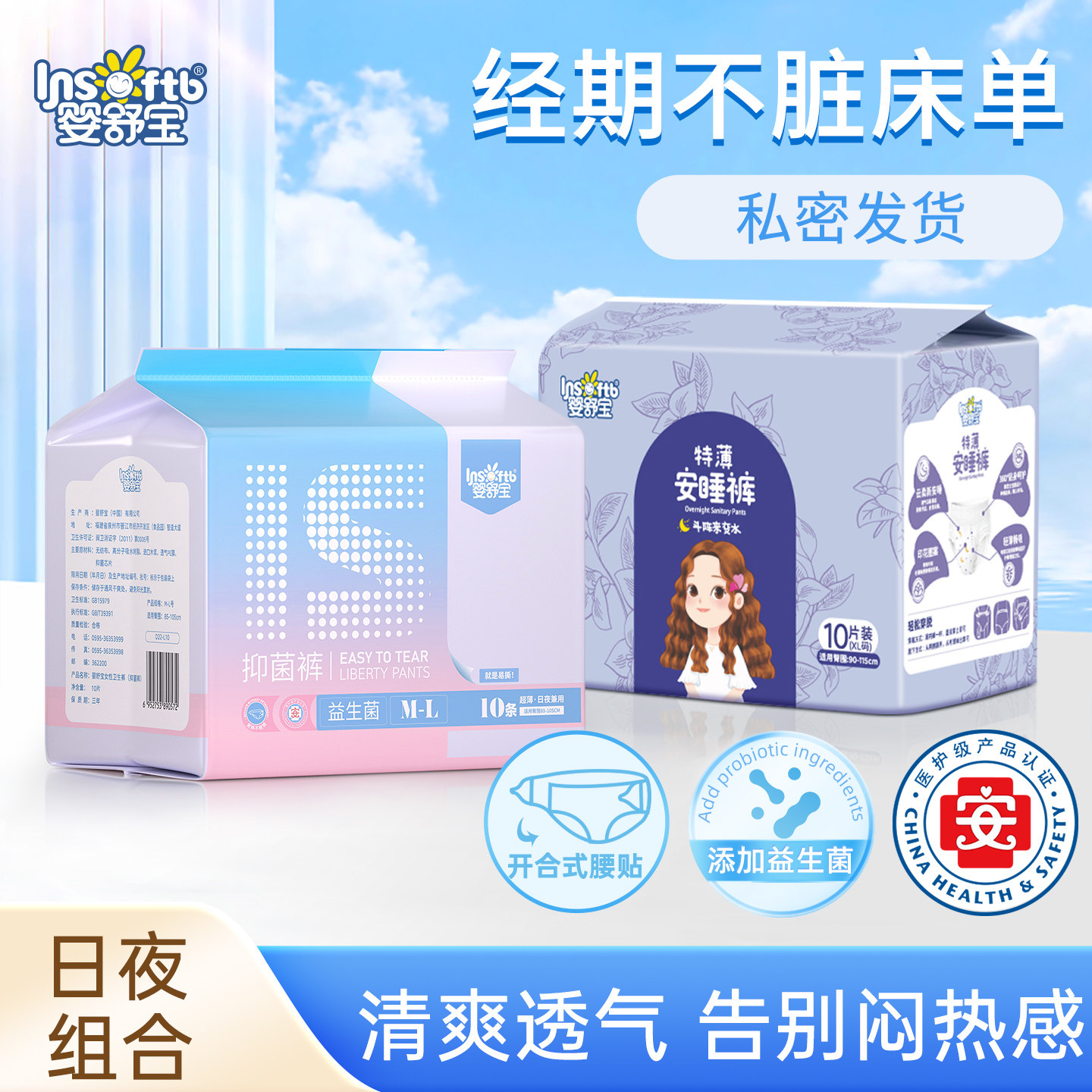 婴舒宝安睡裤经期防漏超薄抑菌夜用裤型卫生巾瞬吸干爽棉柔姨妈裤