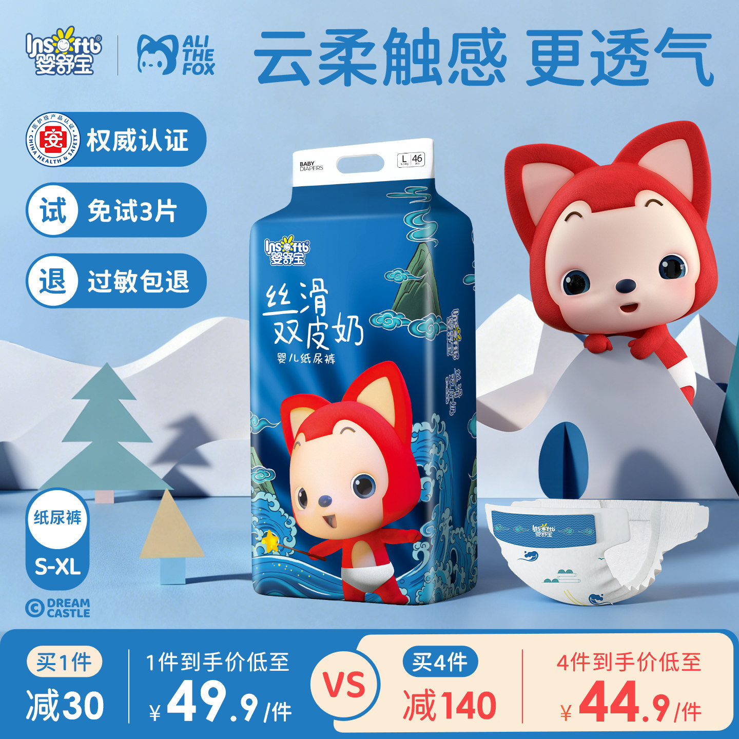 婴舒宝阿狸双皮奶超薄透气干爽新生婴儿纸尿裤s小码宝宝xl尿不湿