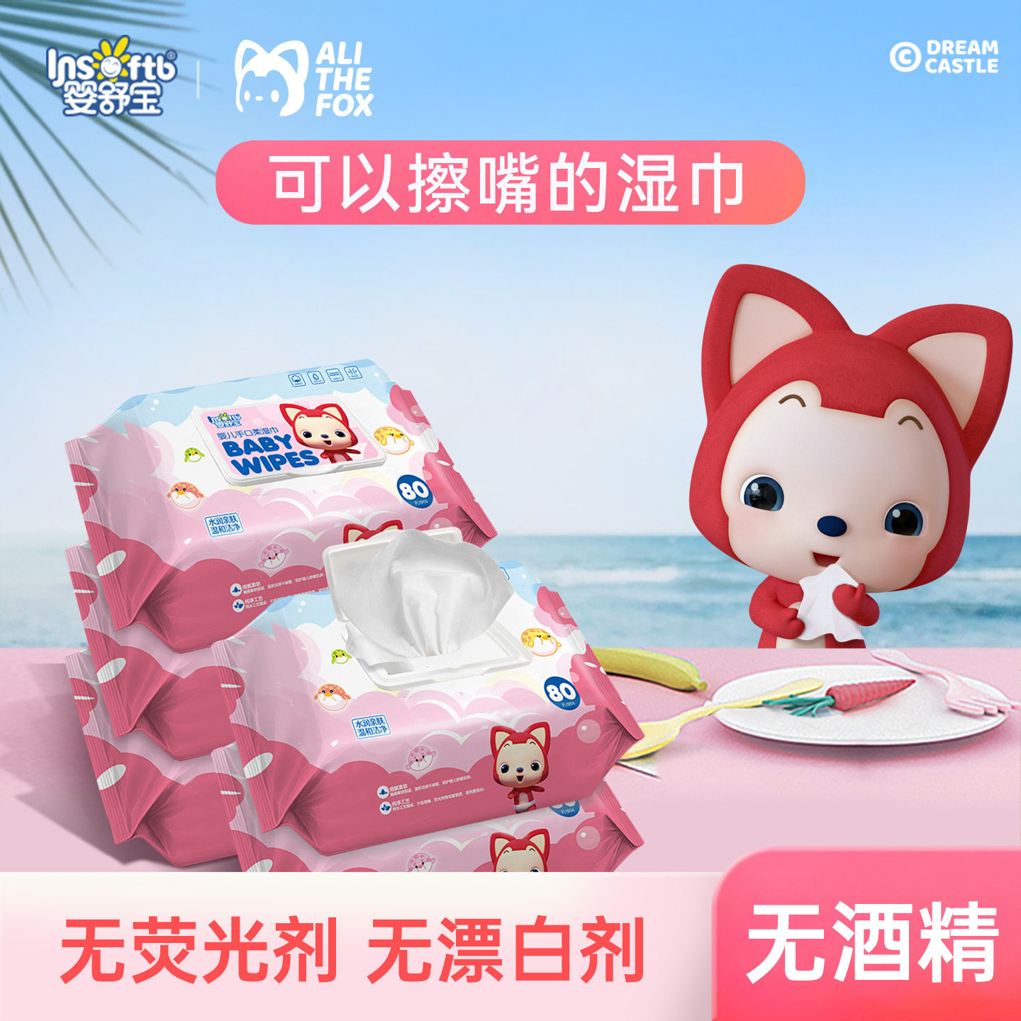 婴舒宝阿狸婴儿手口屁专用家庭实惠装80抽5包湿巾新生儿成人可用