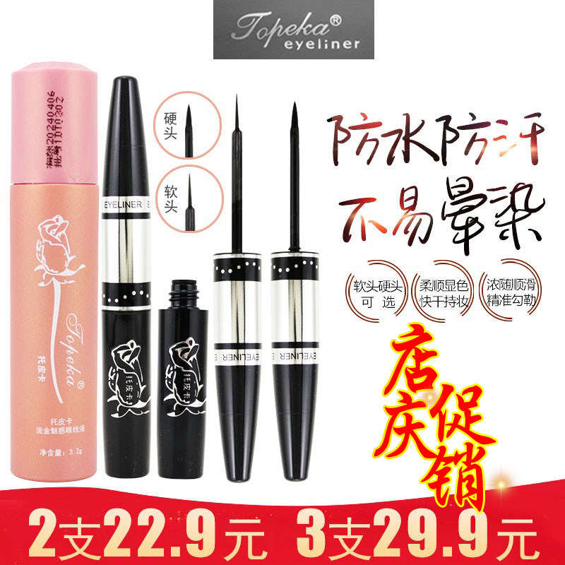 托皮卡眼线液女防水正品不晕染硬头软头细软毛持久瓶装液体眼线笔