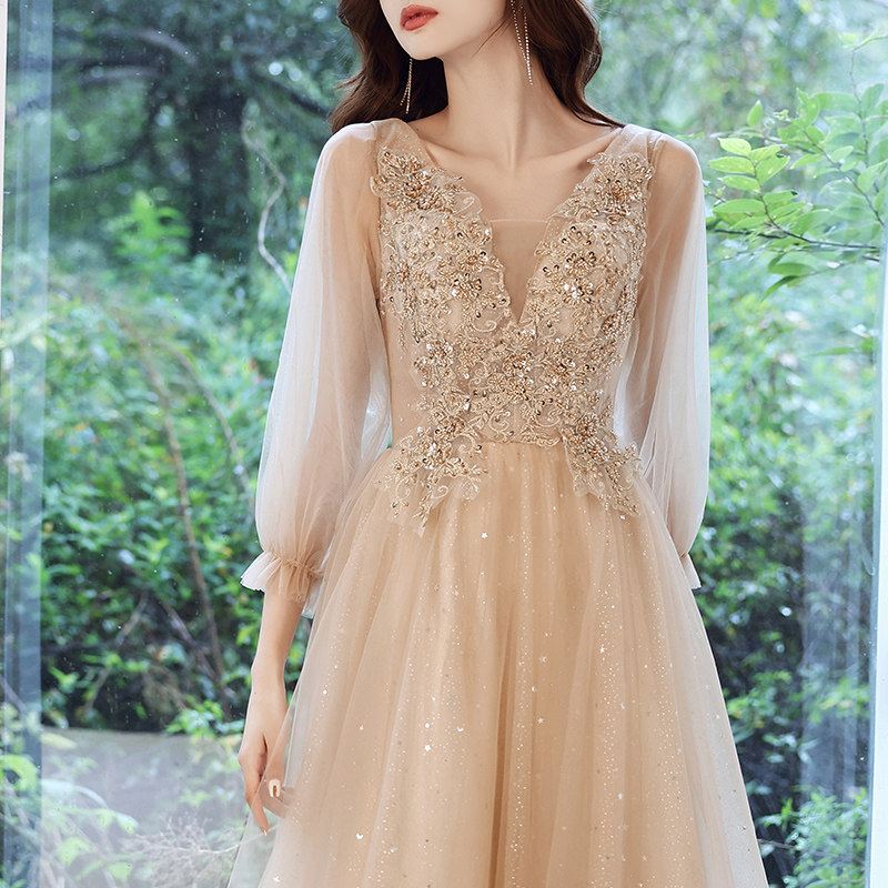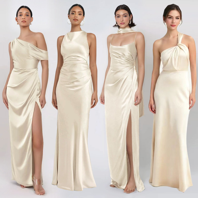 伴娘服2025新款香槟色缎面主持演出服姐妹团生日晚礼服裙平时可穿