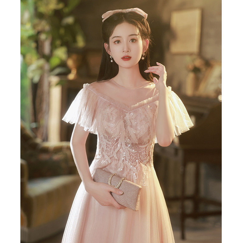 婚礼伴娘服平时可穿高级感小众粉色仙气质小个子姐妹团晚礼服裙女
