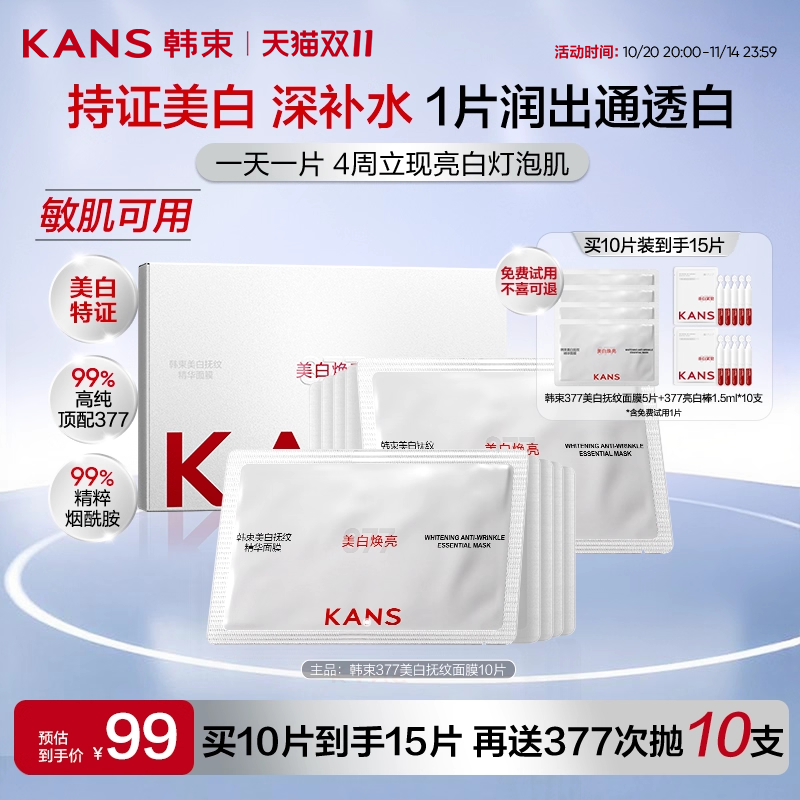 【双11抢先购】韩束377白月光美白淡斑面膜补水烟酰胺提亮紧致