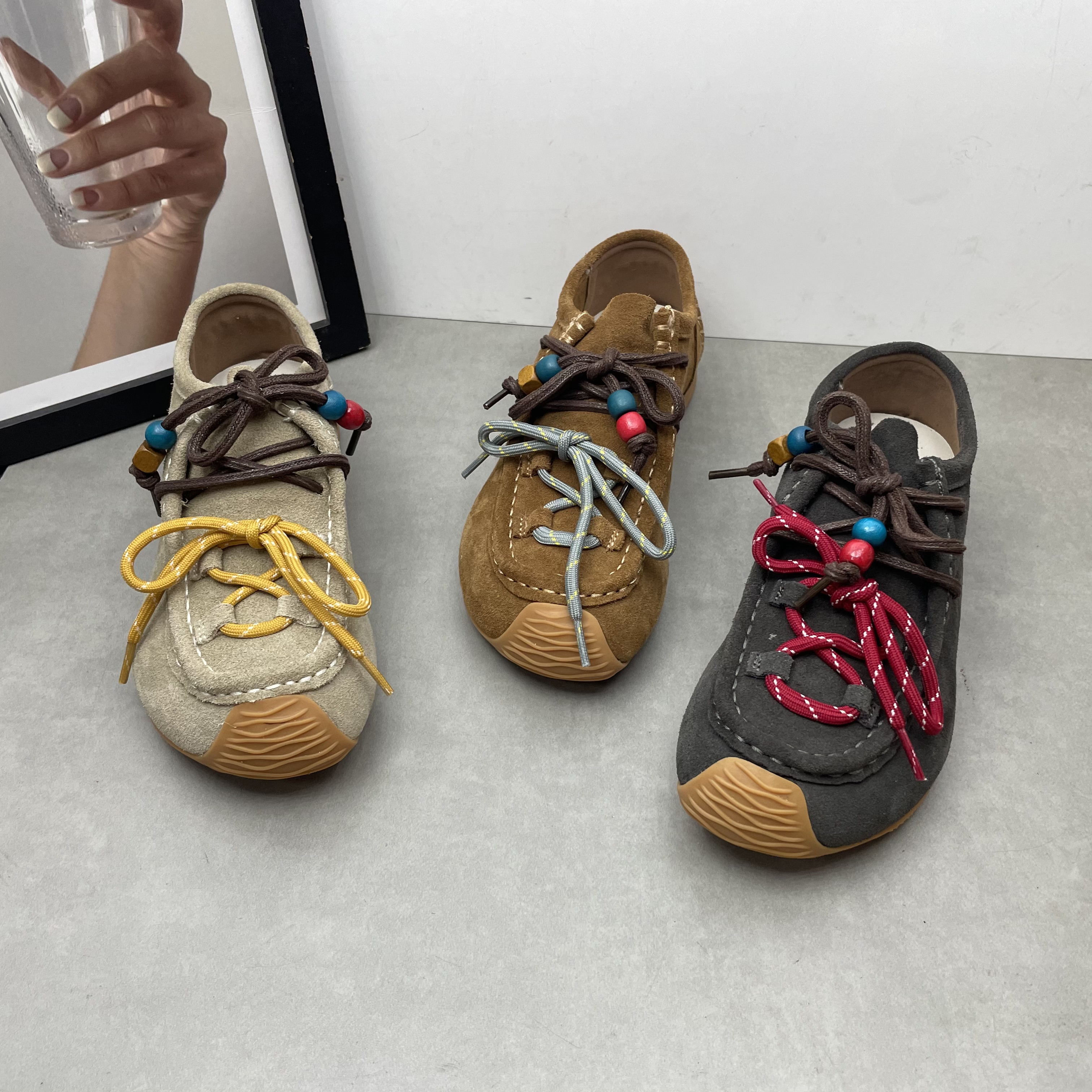 工厂断码真皮女鞋2025秋季新款磨砂牛皮深口系带勃肯鞋软底女单鞋
