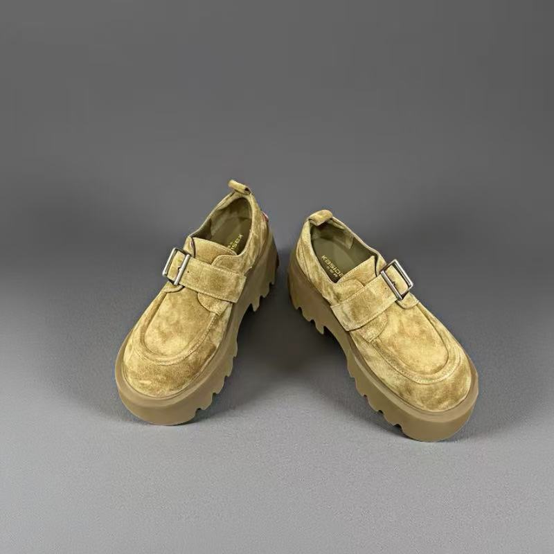 欧洲站2025欧货乐福鞋新品磨砂牛皮厚底圆头复古单鞋女深口勃肯鞋