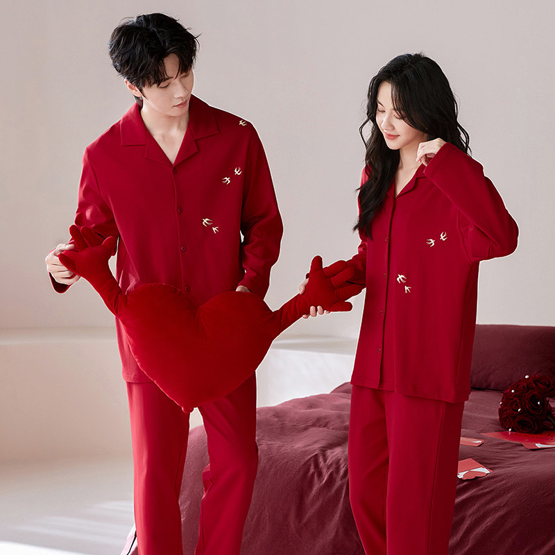 安之伴红色本命年男女睡衣结婚新婚情侣套装春秋季纯棉长袖家居服