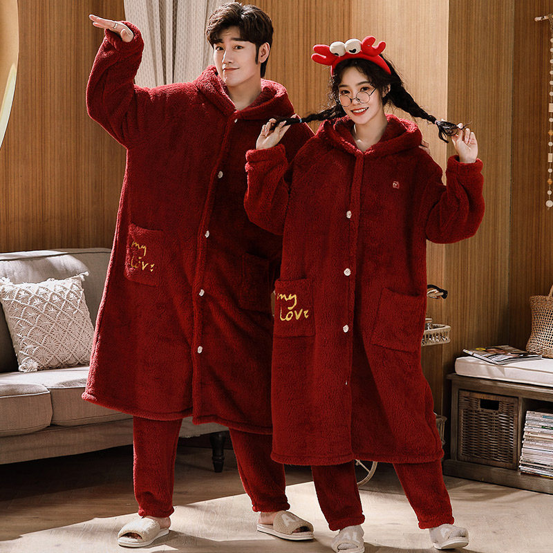 女士红色新婚睡衣套装秋冬季法兰绒加绒加厚结婚本命年珊瑚绒保暖