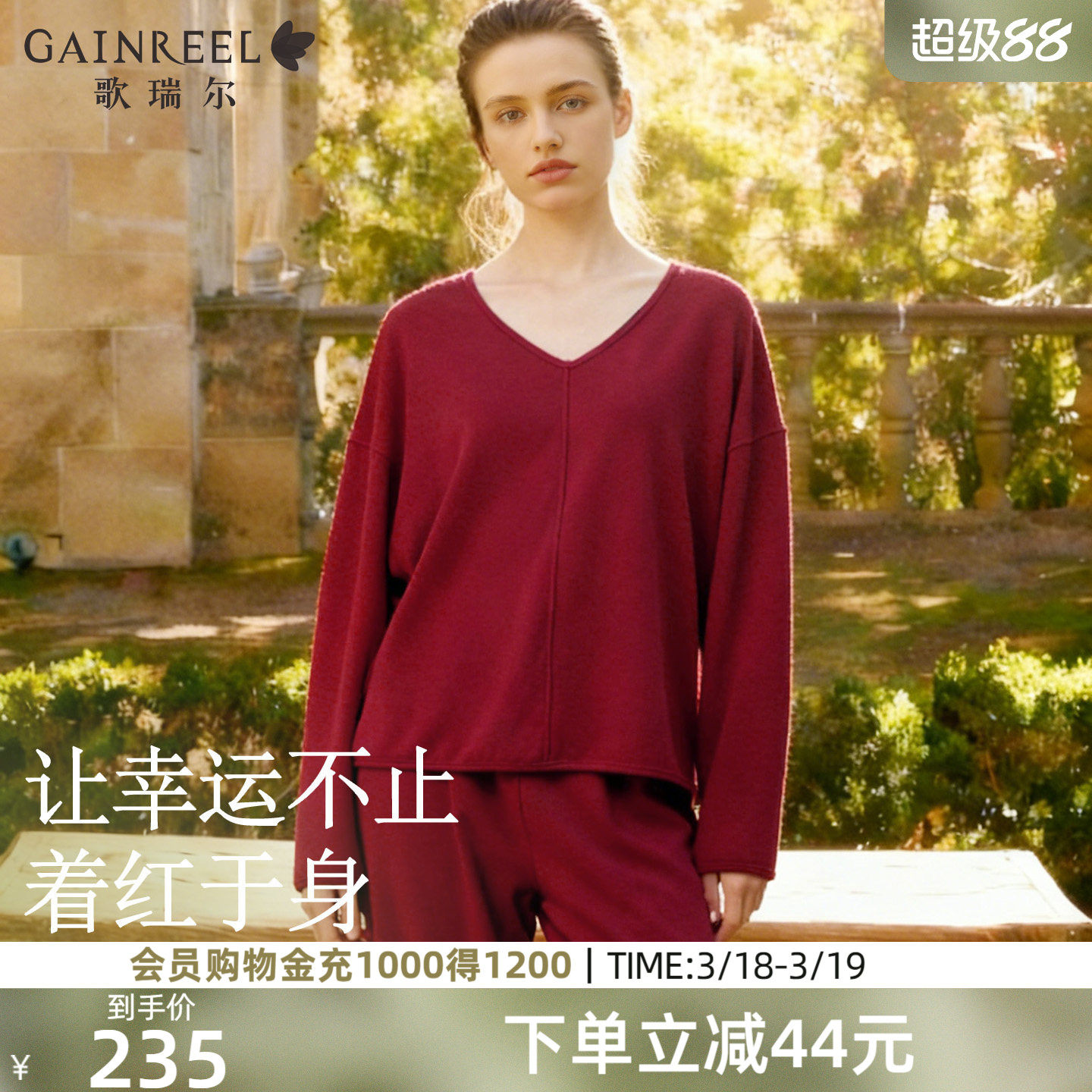 贝妍新婚睡衣女春秋新款V领柔软棉长袖家居服大码本命年红色套装