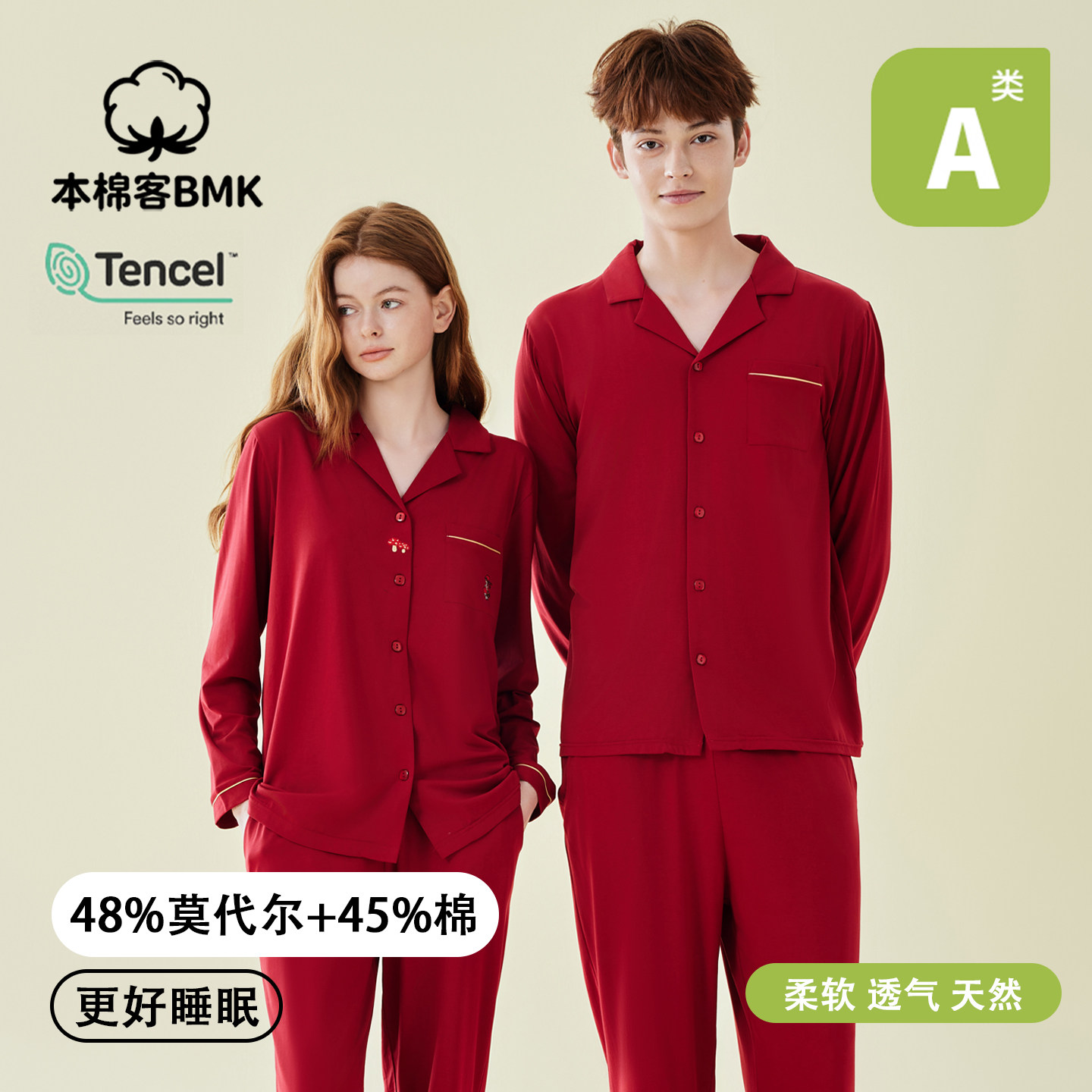 本棉客A类喜庆红新年莫代尔棉情侣睡衣本命年套装家居服新婚睡衣