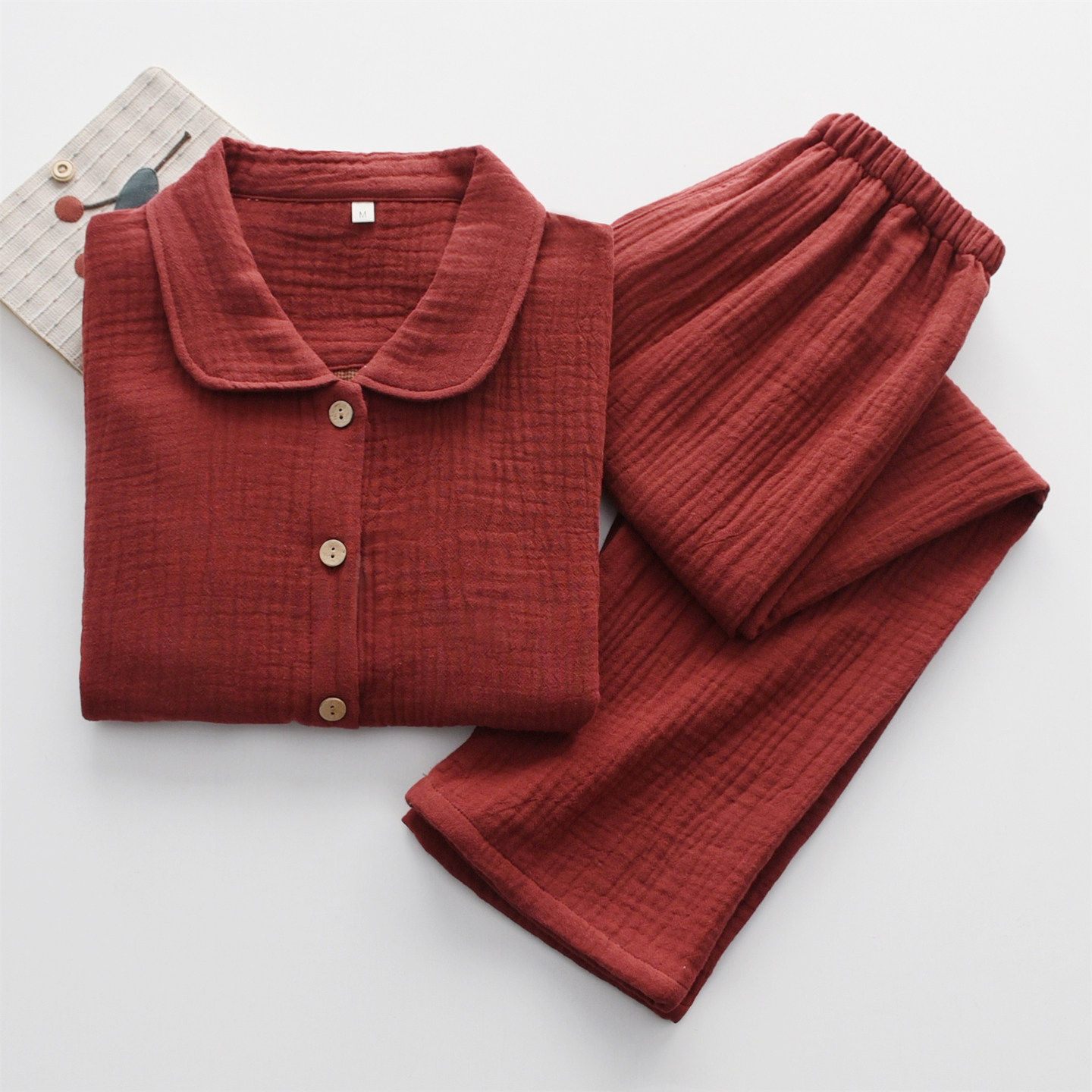 都市丽人纯棉红色睡衣结婚新婚情侣套装男女双层棉纱本命年家居服