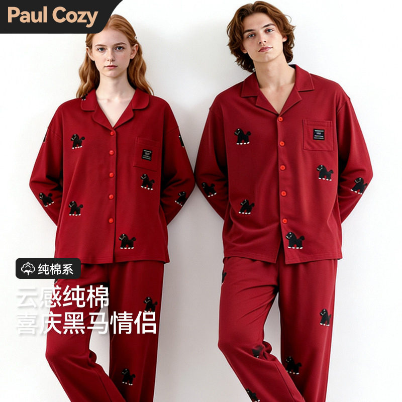 PaulCozy2026新款马年新婚睡衣本命年情侣结婚家居服红色纯棉男女