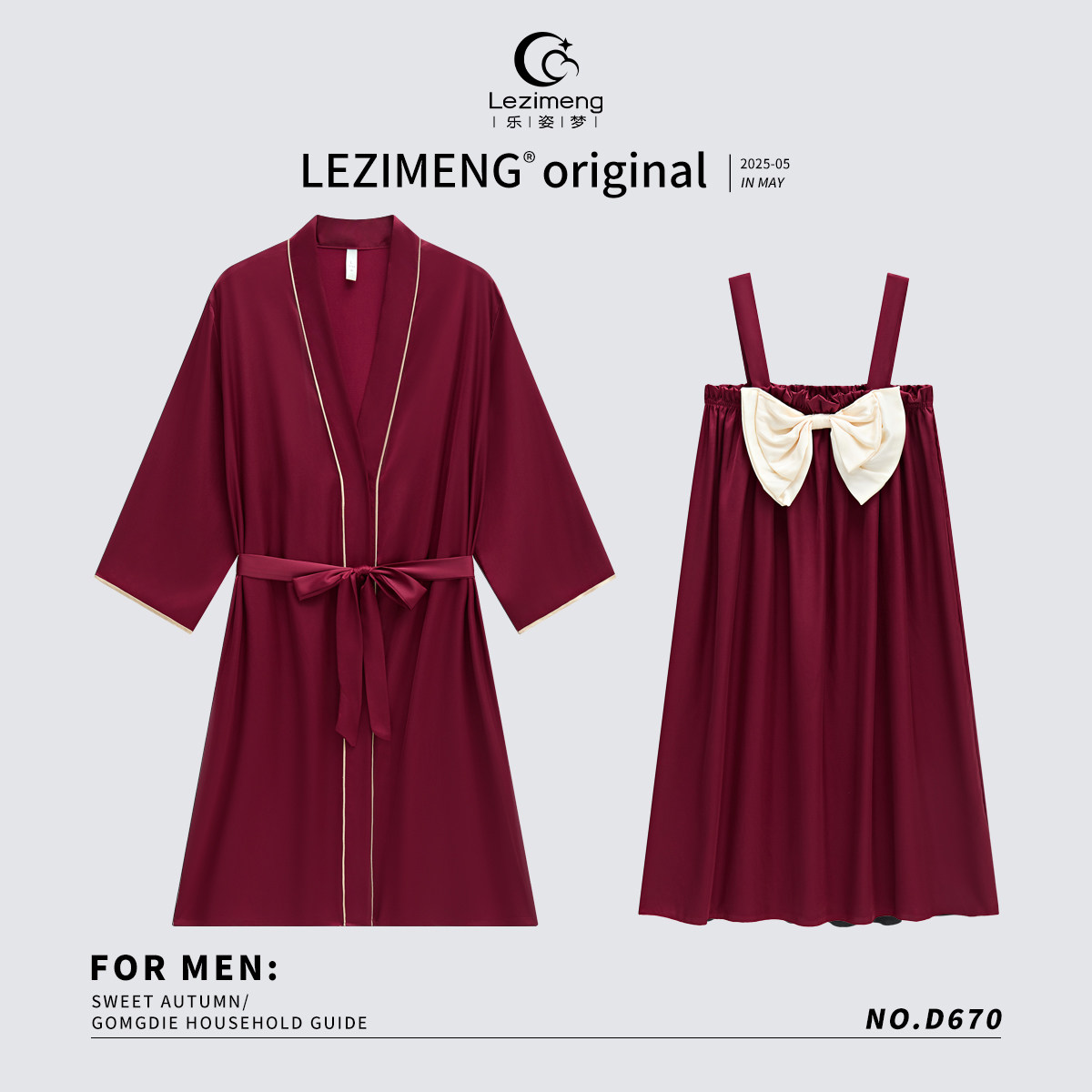 红色春秋冰丝吊带睡裙女性感本命年睡袍新婚睡衣夏晨袍家居服套装
