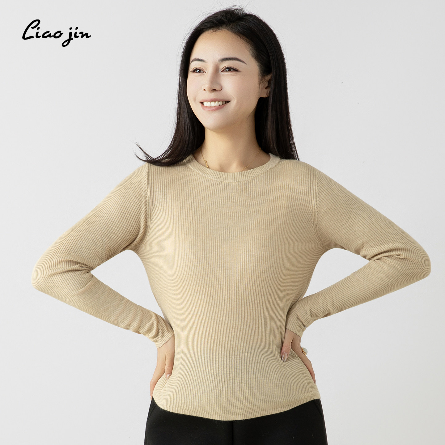 辽锦柞蚕丝肌底衣针织衫女士圆领长袖秋冬纯色打底衫2025新款高级