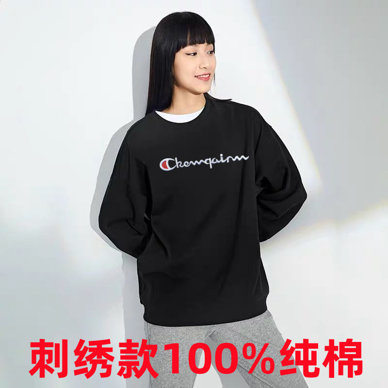 学生百搭刺绣纯棉卫衣圆领加绒卫衣男女情侣百搭刺绣宽松长袖上衣