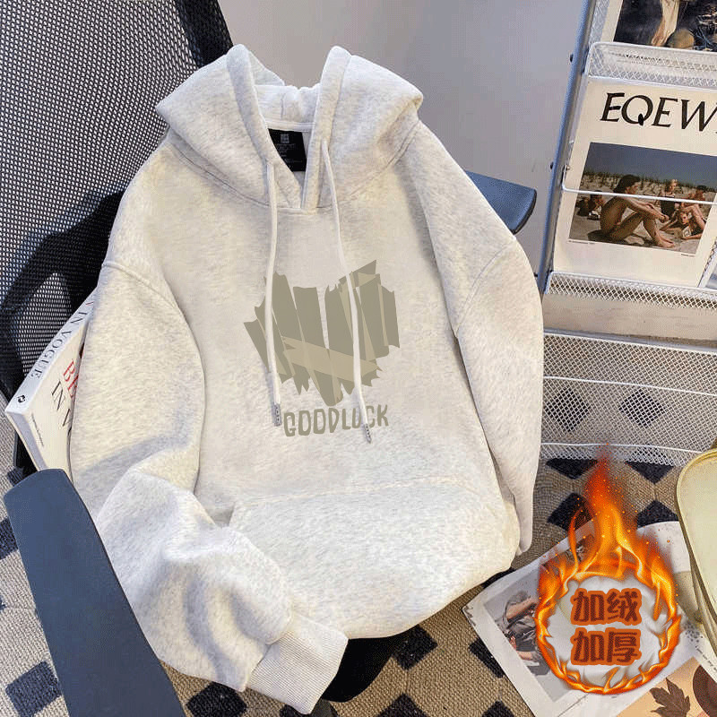 高端大牌加绒加厚纯棉连帽卫衣女设计感小众学生印花休闲宽松上衣