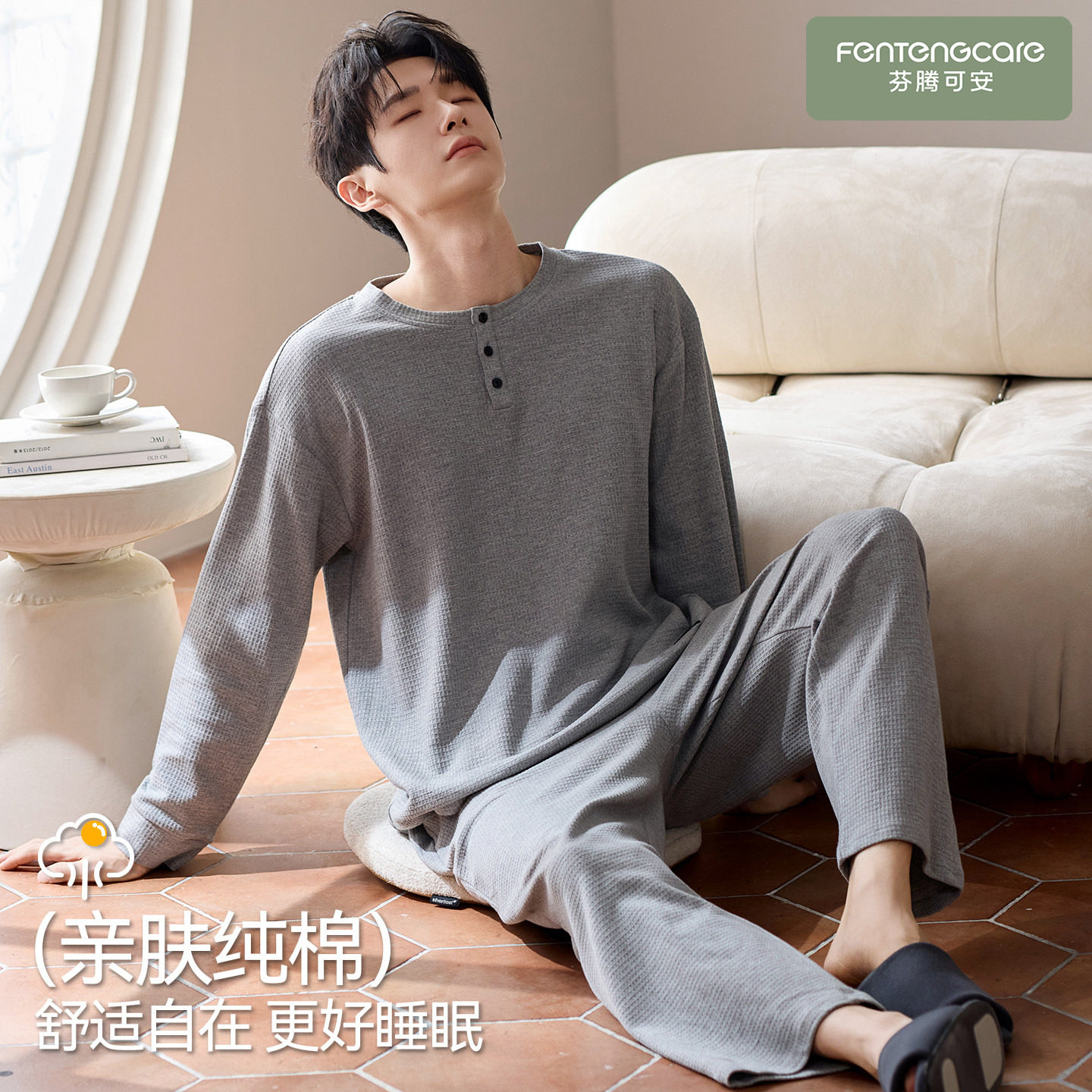 芬腾可安睡衣男款男士秋季纯棉2026新款长袖大码浅灰家居服秋冬天