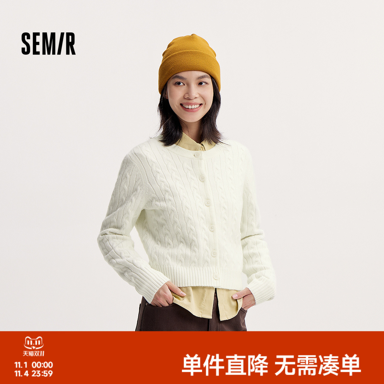森柔|森马针织开衫女冬季短款绞花肌理圆领毛衫百搭叠穿打底上衣