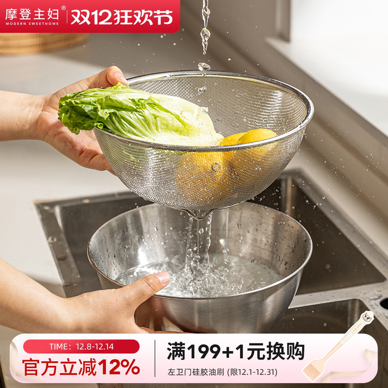 摩登主妇304不锈钢沥水篮洗菜盆滤水篮洗米盆厨房洗水果淘米神器