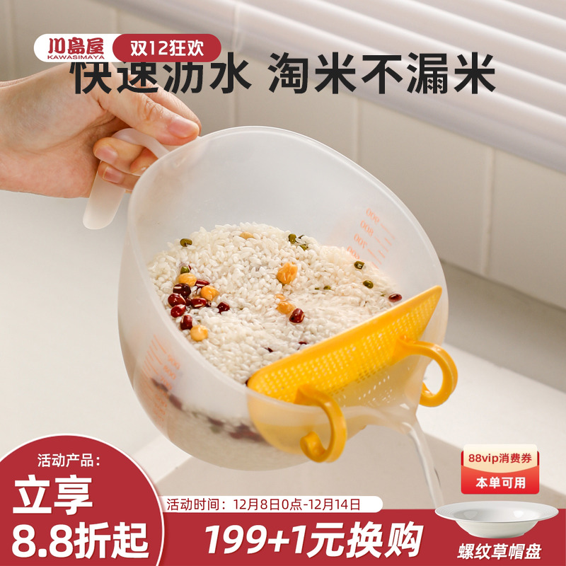 川岛屋淘米神器食品级洗米筛淘米盆沥水篮专用洗菜盆淘米杯过滤器