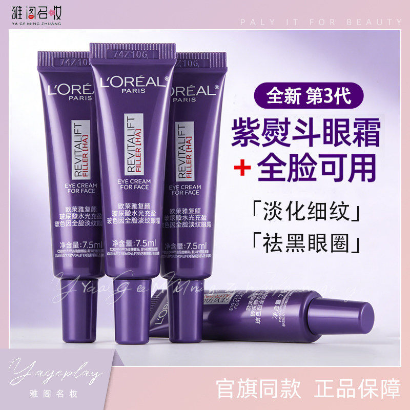 欧莱雅紫熨斗全脸眼霜中小样7.5ml玻尿酸补水紧致淡化细纹黑眼圈