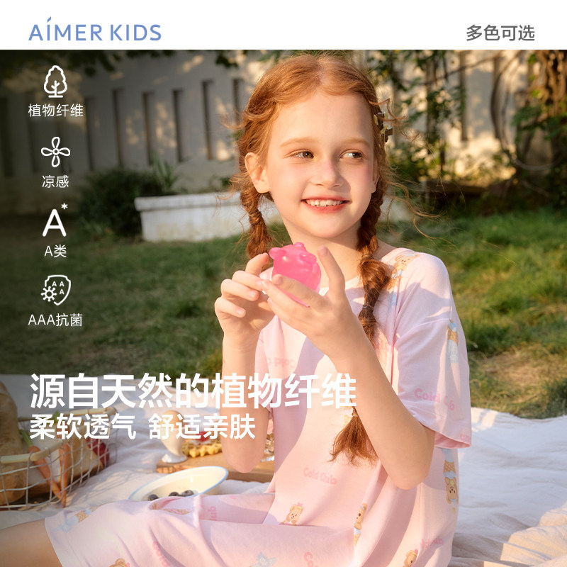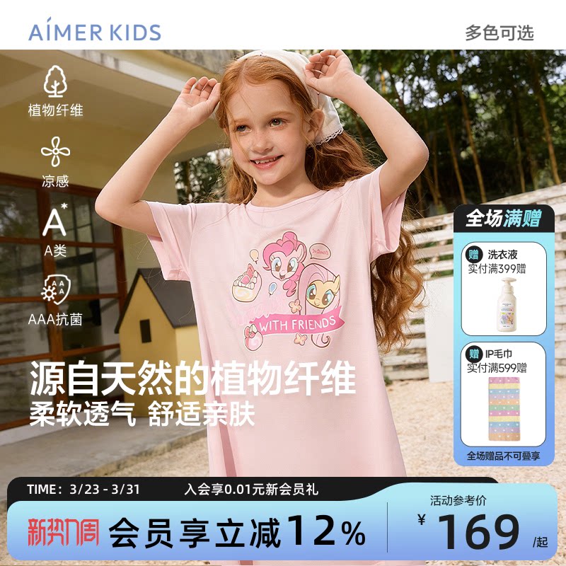 爱慕儿童莫代尔女孩短袖睡裙抗菌睡裙小马宝莉变形金刚IP卡通春夏