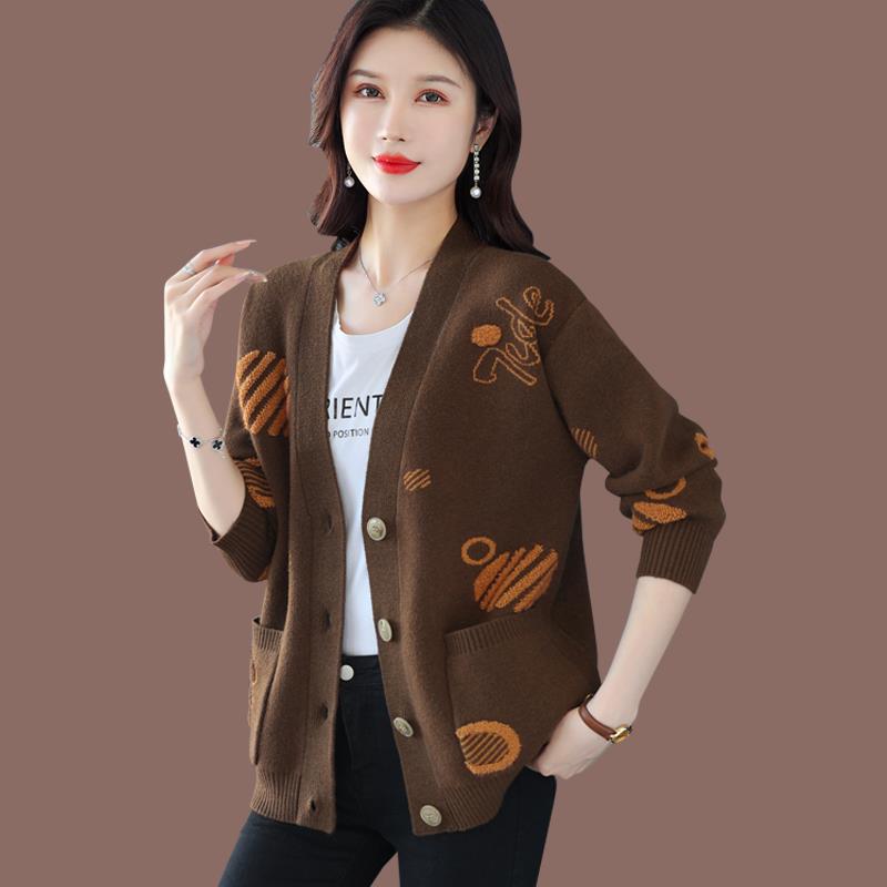 V领开衫毛衣女春秋2024新款宽松上衣外搭洋气羊毛针织外套羊绒衫