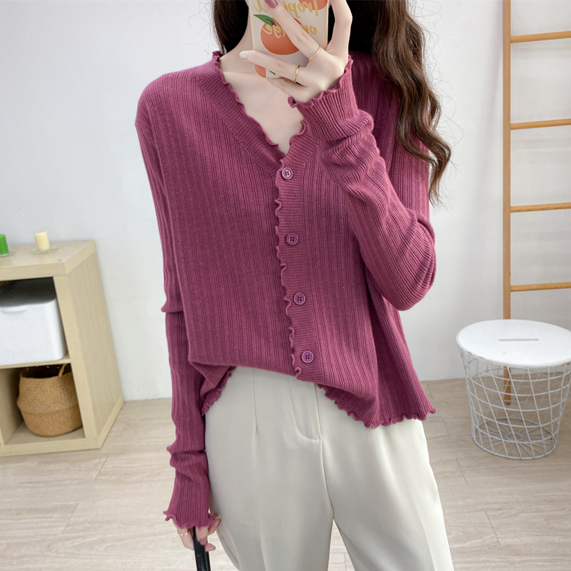 春秋新款v领开衫毛衣女士修身短款小个子内搭长袖打底针织衫上衣