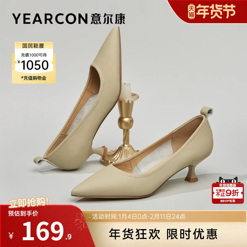 羊皮米白色珍珠尖头浅口中跟5cm细跟高跟鞋女春秋单鞋配裙子礼服