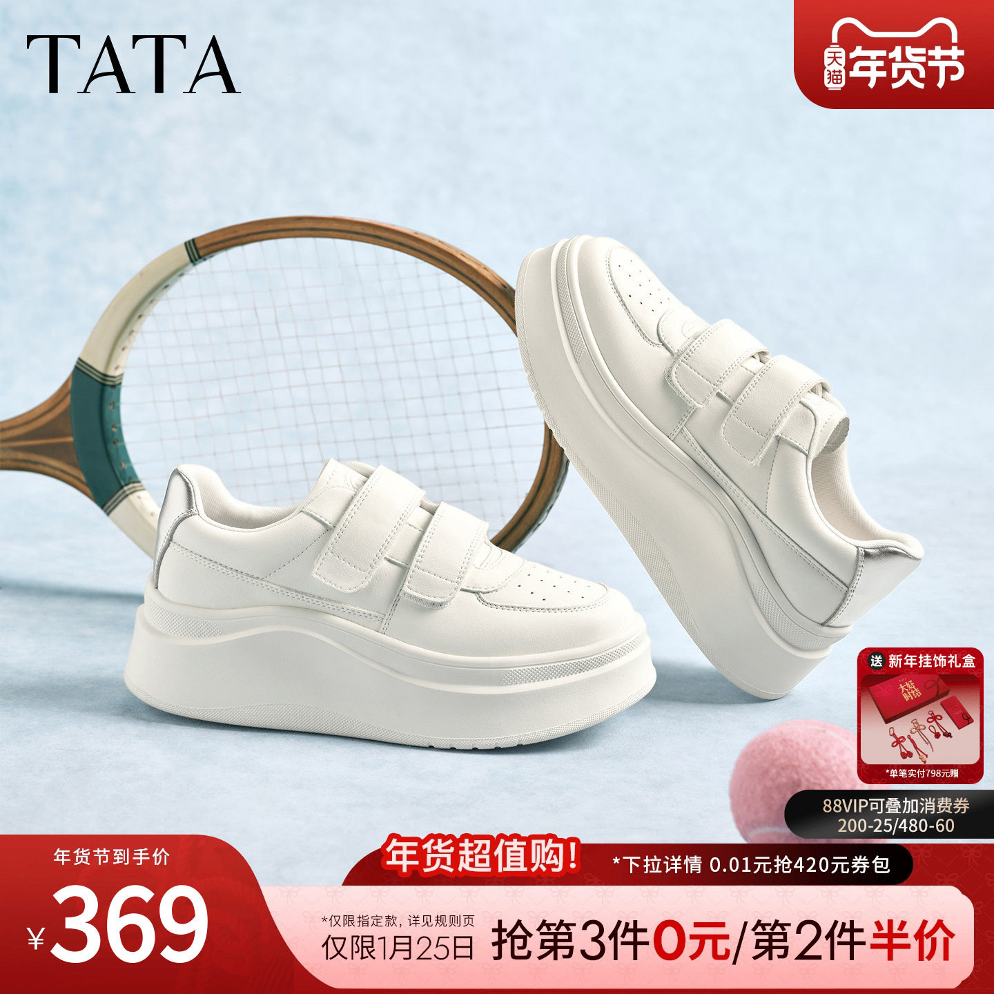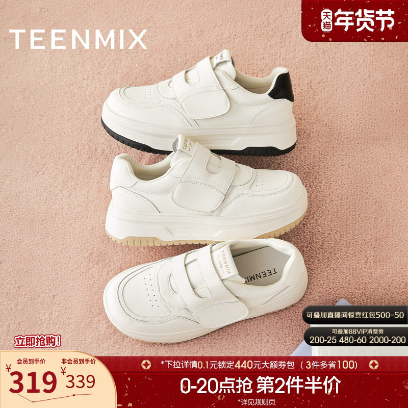TATA他她女鞋春季魔术贴小白鞋休闲百搭板鞋增高厚底鞋G3N02AM6