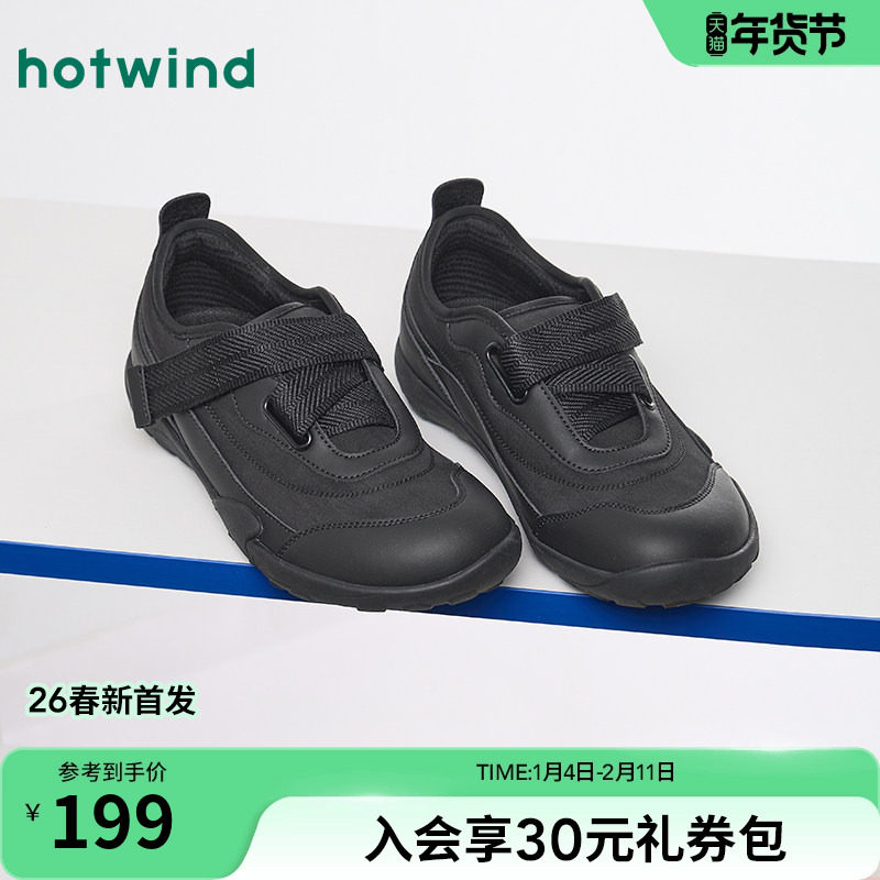 热风运动休闲鞋女2026年春季新款黑色软底女鞋百搭魔术贴户外鞋子