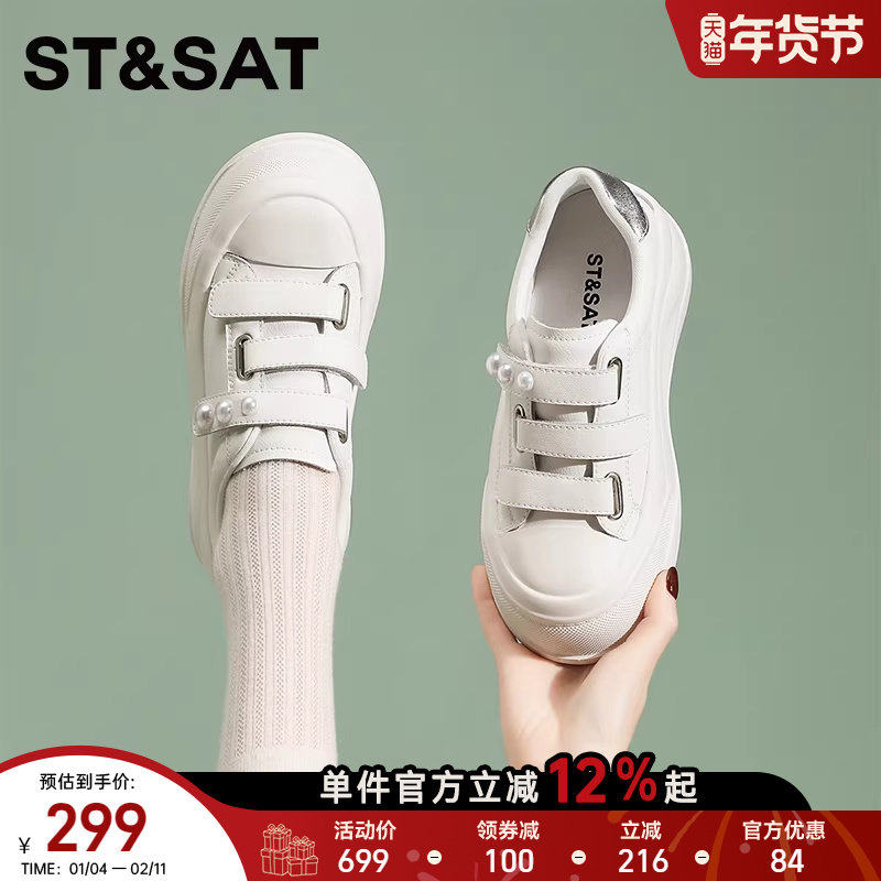 SKAP圣伽步女鞋2026春季新款单鞋魔术贴厚底增高简约女运动休闲鞋