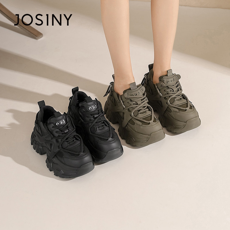 卓诗尼女鞋撤柜正品厚底老爹鞋女款冬季加绒加厚魔术贴女鞋休闲鞋