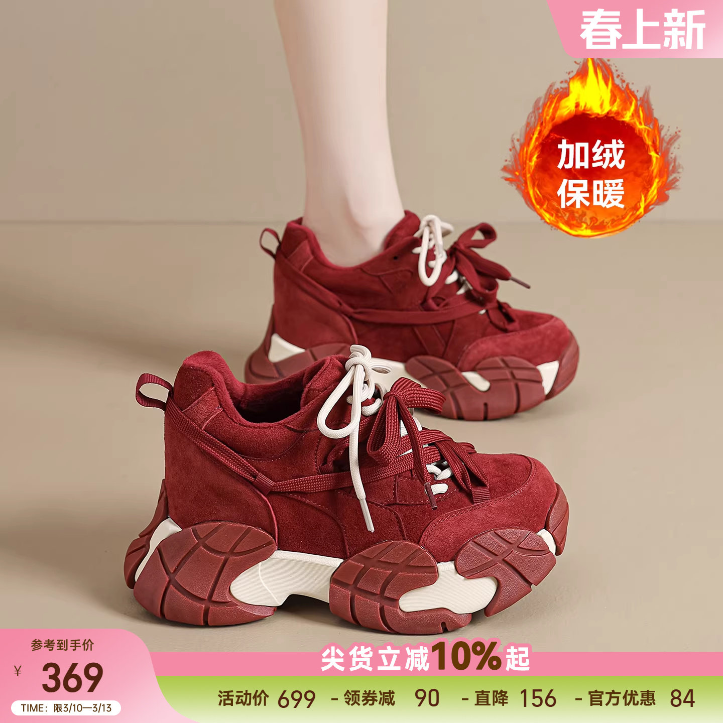 - 加绒厚底鞋女