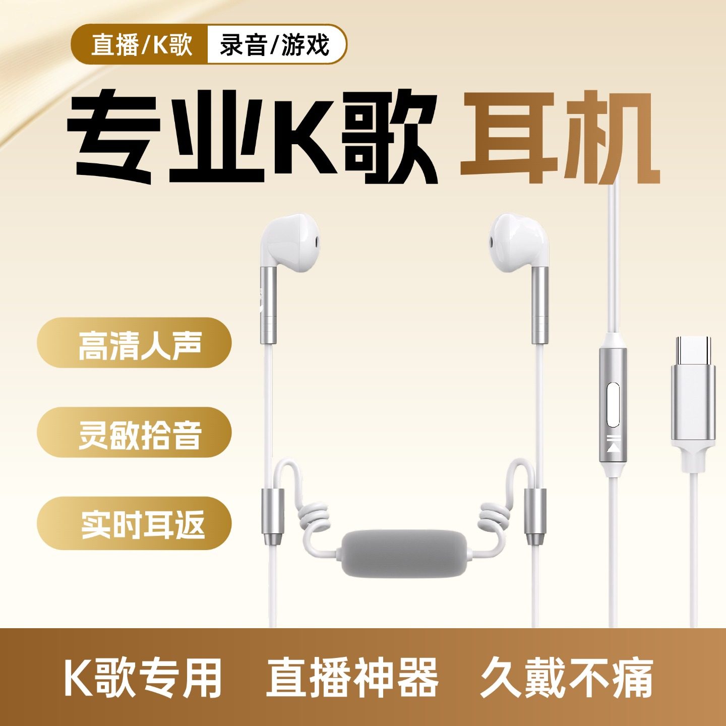 自带声卡耳机有线全民k歌专用唱歌麦克风录歌耳返直播苹果typec口