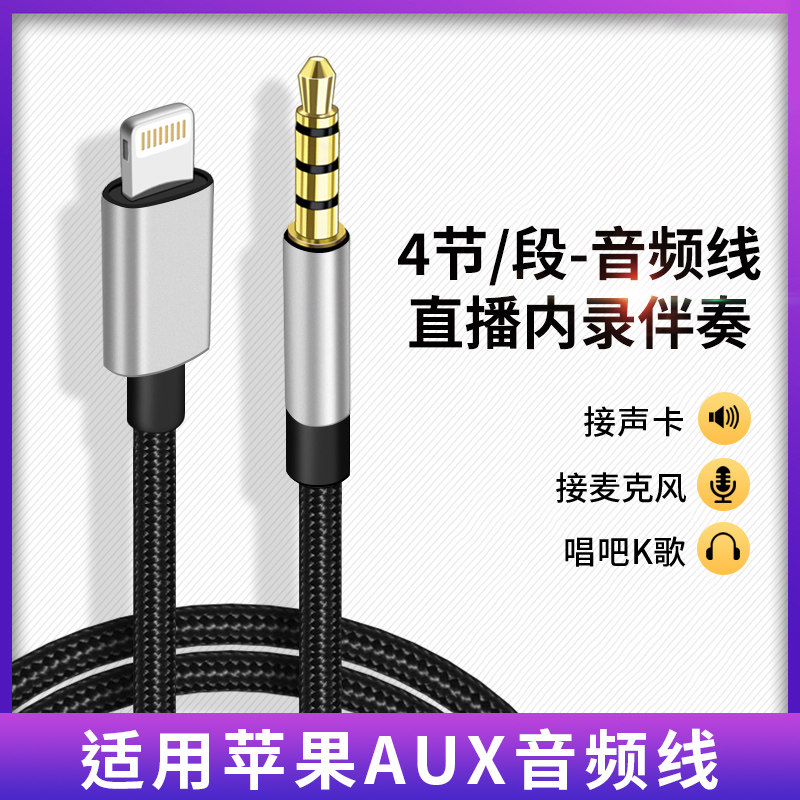适用苹果6plus手机麦克风唱吧录音线全民K歌音频线3.5mm车载AUX连