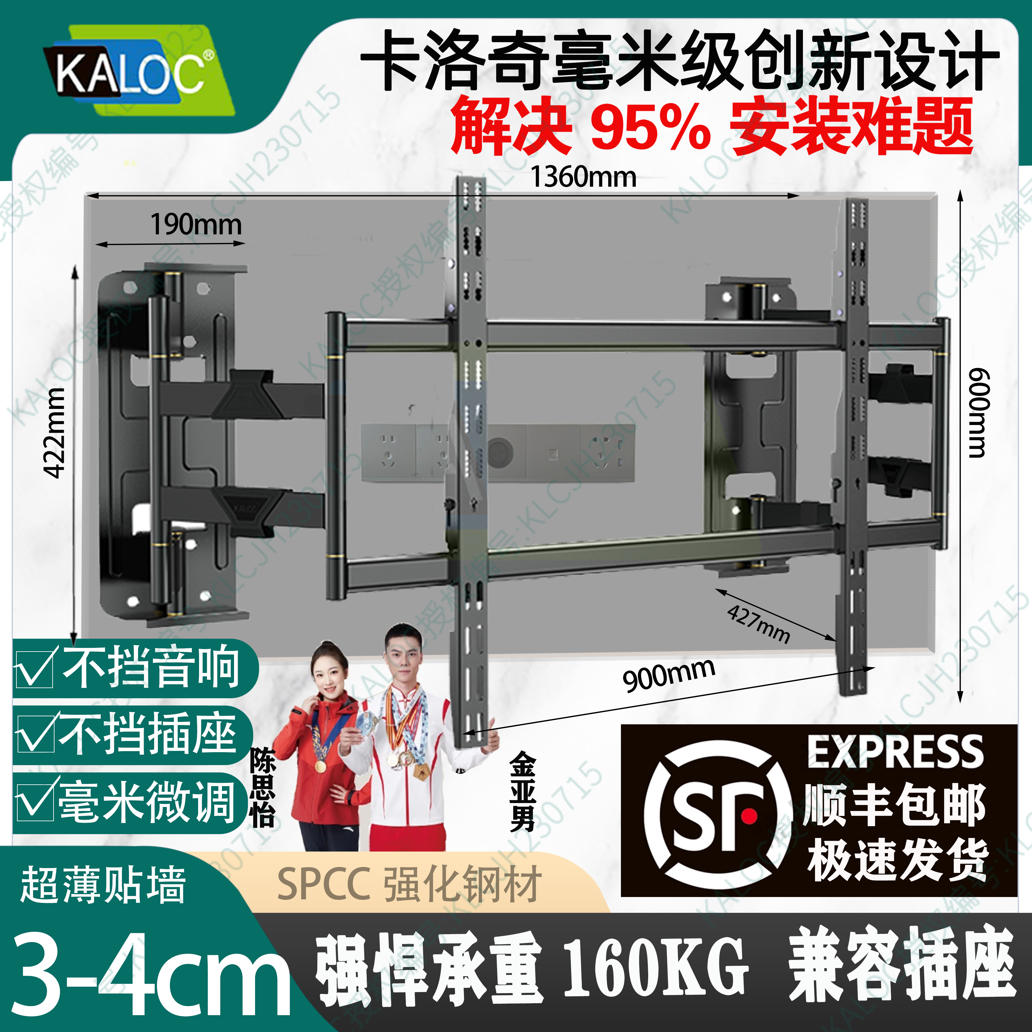 卡洛奇超薄型伸缩旋转电视挂架NX100 NX90不挡插座 音响电视支架