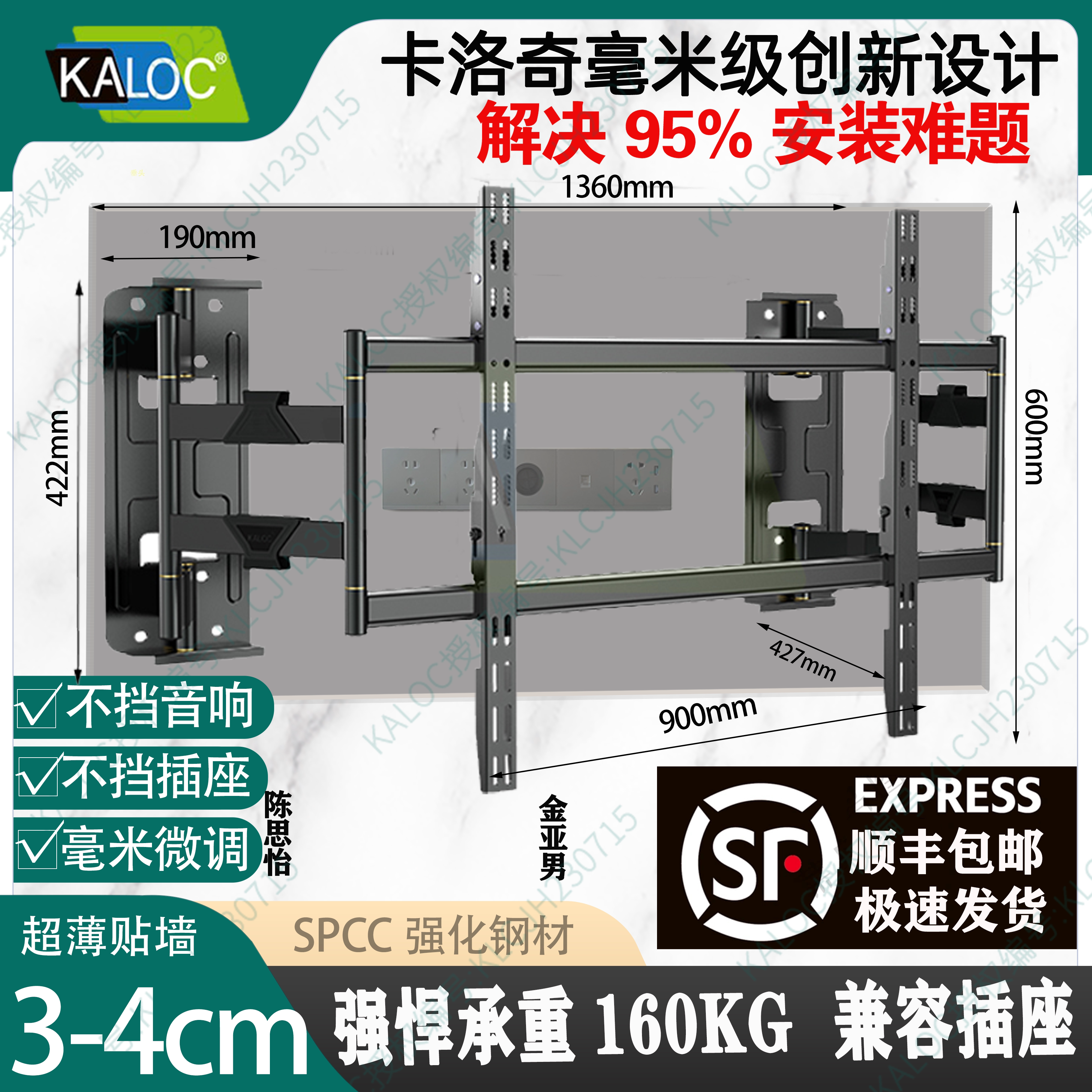 KALOC/卡洛奇电视支架壁挂可拉伸电视伸缩挂架XT90毫米级阻尼悬停