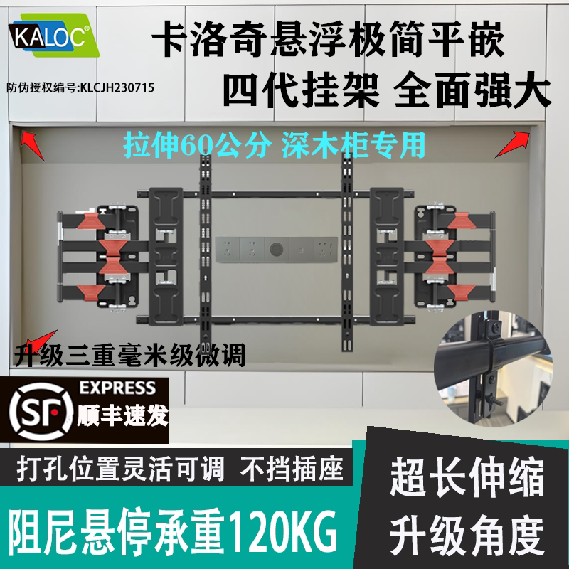 卡洛奇超薄内嵌伸缩电视挂架适用TCL雷鸟海信75 85 100英寸避插座
