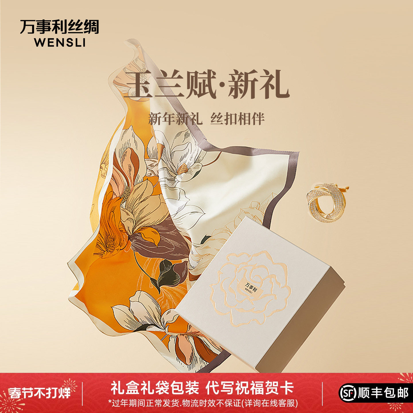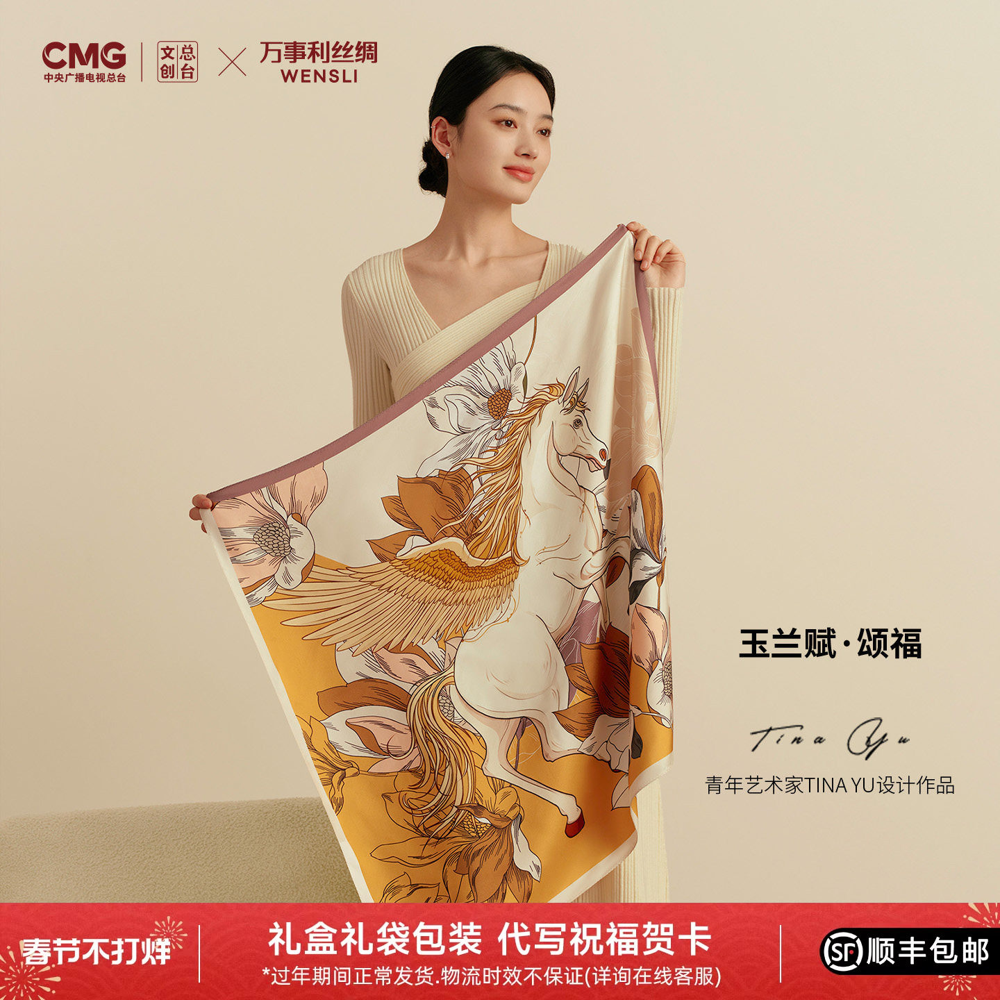[2026马年春晚系列]万事利×总台文创真丝丝巾桑蚕丝玉兰赋颂福