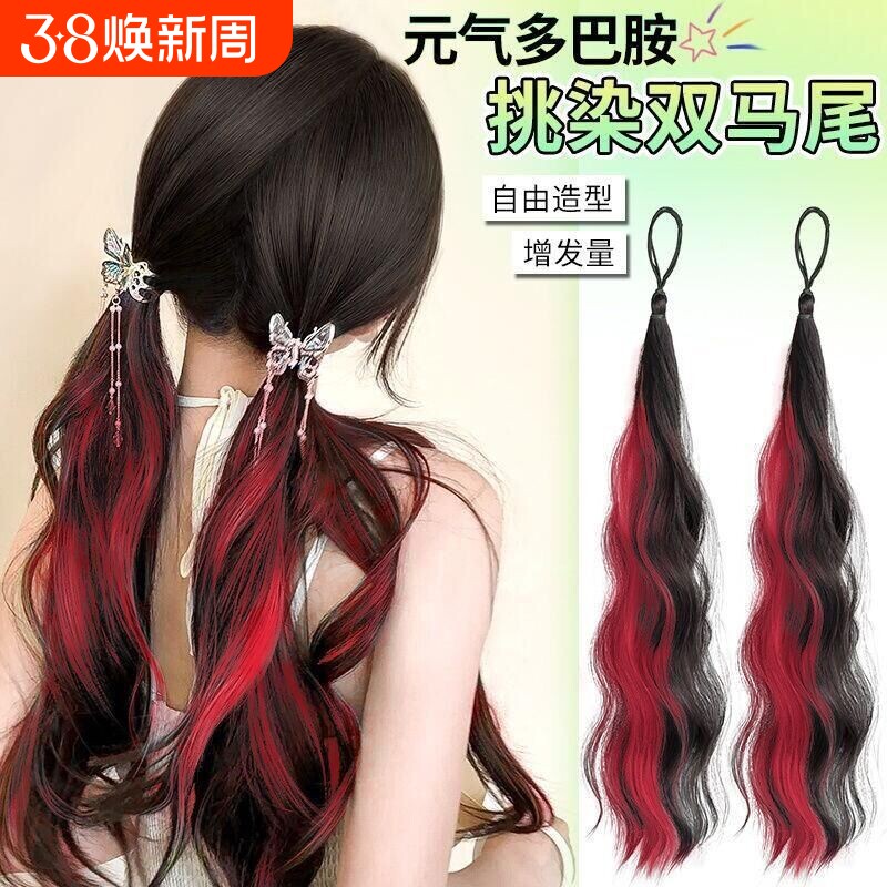 假发马尾辫子女长发自然仿真绑带式低扎元气甜妹微卷双马尾假发片