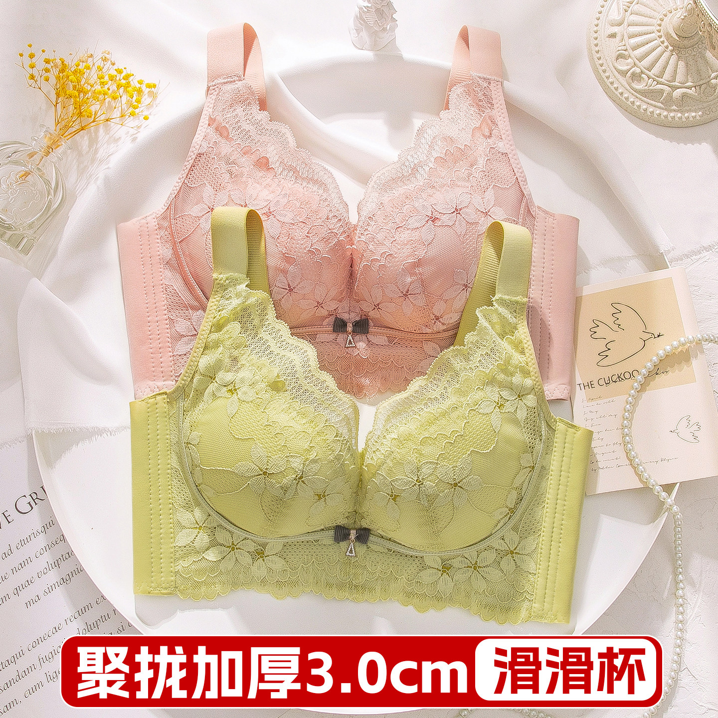 内衣女小胸聚拢加厚3cm调整型红豆杉滑滑杯小胸显大无钢圈文胸