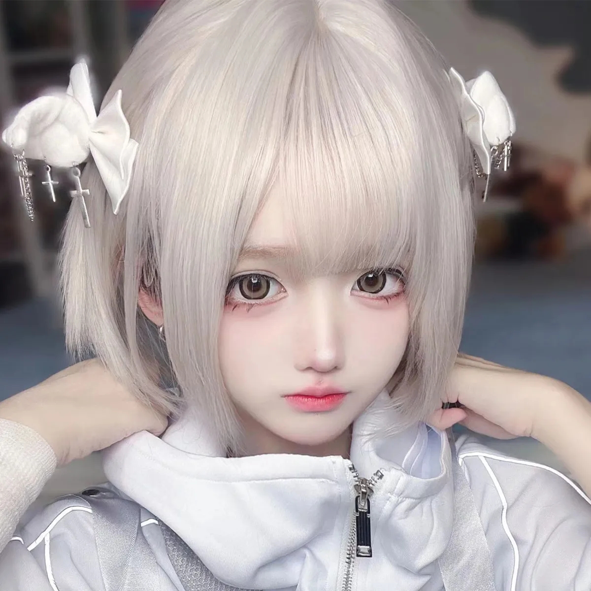 假毛银灰色日系cos短直发哥特波波头空气刘海二次元女学生版头套