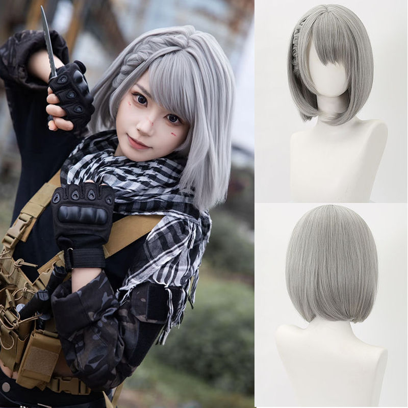 三角洲行动麦晓雯假发 骇爪原皮二次元游戏cos灰色假毛短发全头套