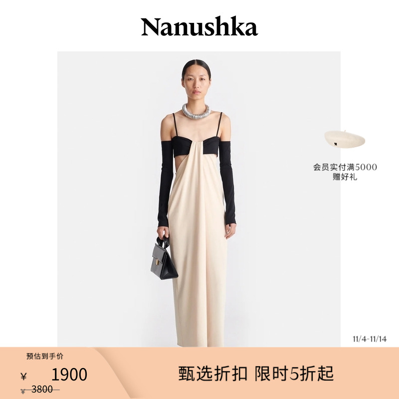 【季末折扣】 NANUSHKA 女士 SELLY 露肩束胸撞色长款连衣裙
