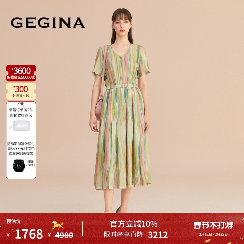 GEGINA吉吉娜女装商场同款露肩连衣裙彩色印花女士度假长裙子