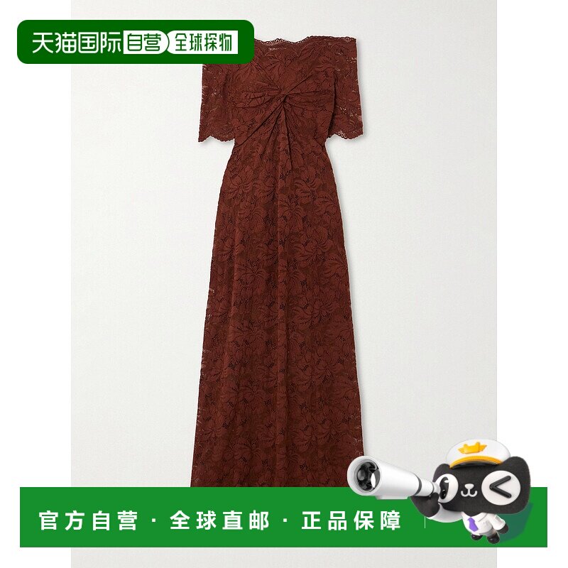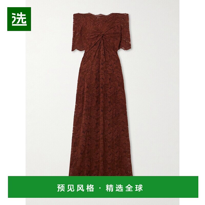香港直邮Rabanne 女士 露肩前扭结弹力蕾丝中长连衣裙 25HJRO106P