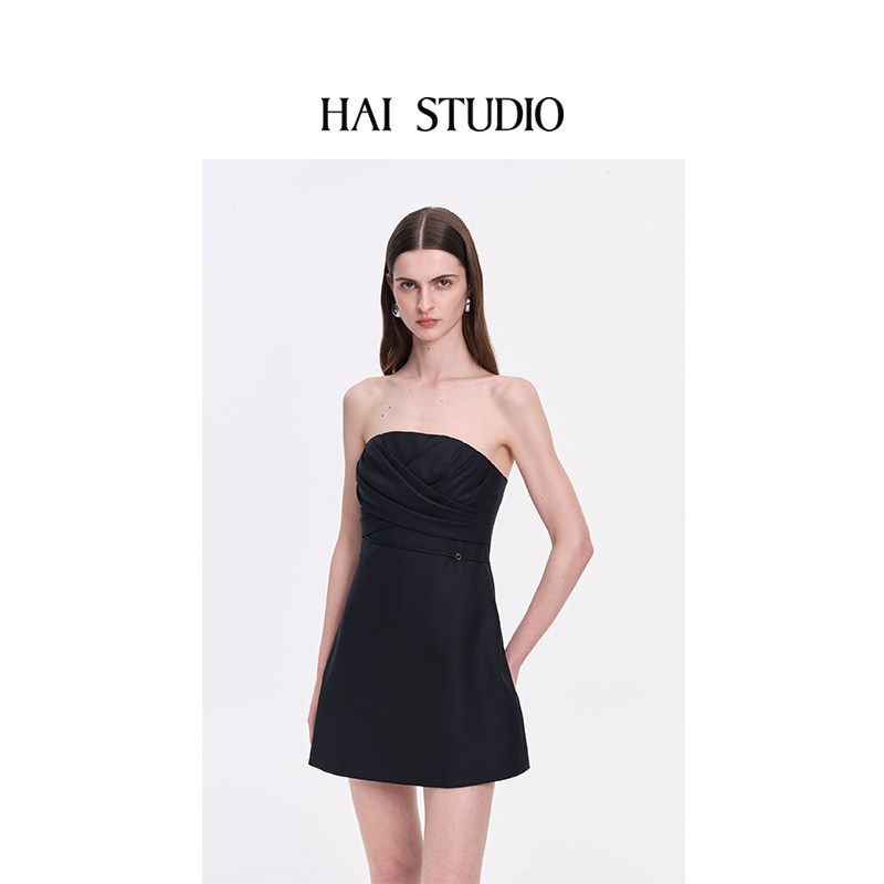 HAI STUDIO秋冬 女士黑色斜裁吊带裙吊带露肩连衣裙礼服