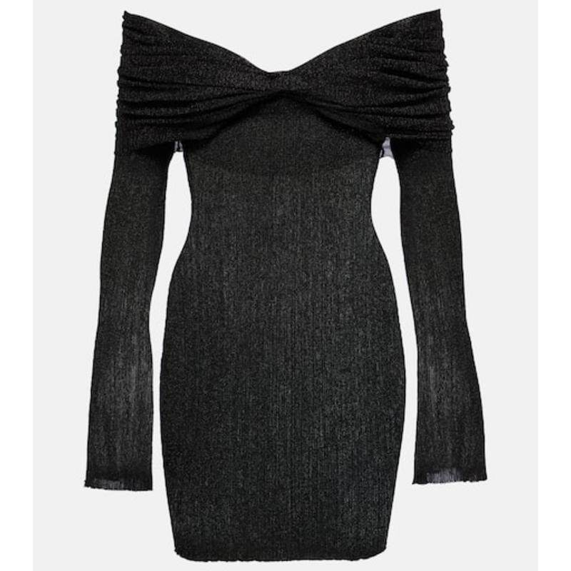 AYA MUSE 女士 短款连衣裙 露肩罗纹针织金银锦缎迷你连衣裙