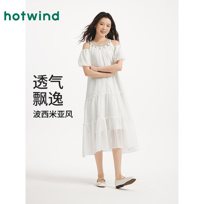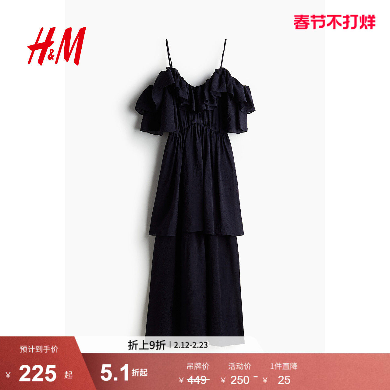 HM女装连衣裙冬季女士时尚休闲简约风露肩连衣裙1238459