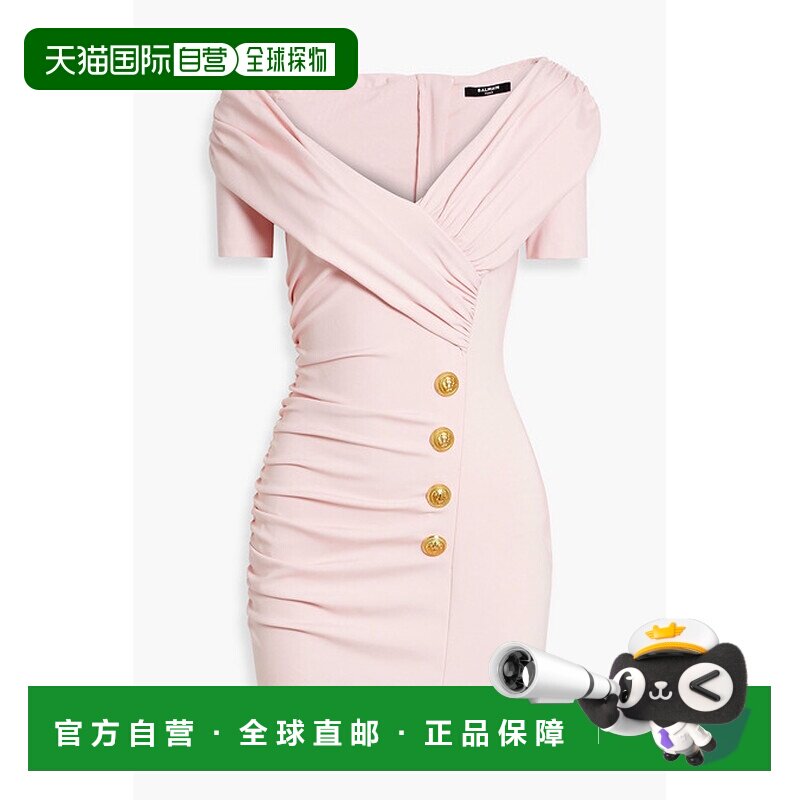 1h可退 潮奢 Balmain 巴尔曼 女士 平纹针织露肩连衣裙 YF1R7055J